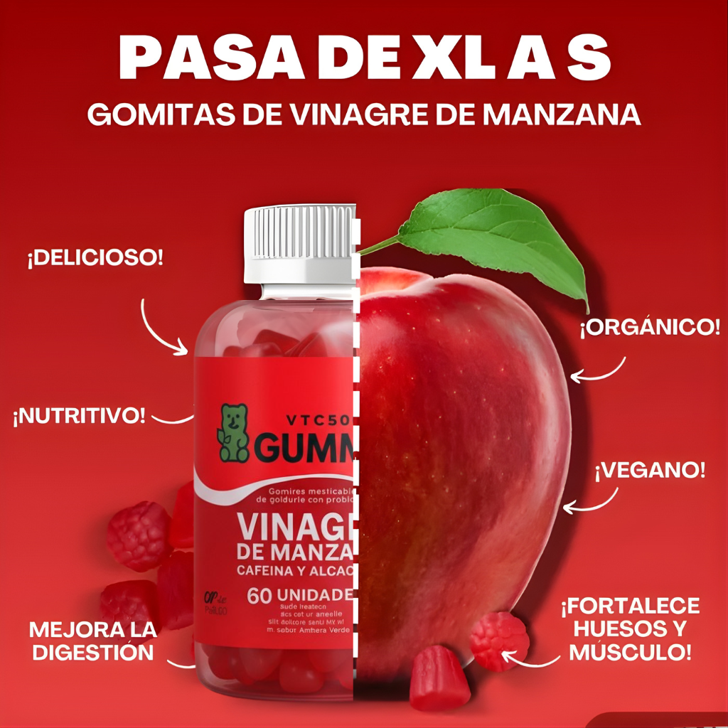 Gomitas de vinagre de manzana, fáciles de tomar y deliciosas, que apoyan tu digestión y metabolismo.
